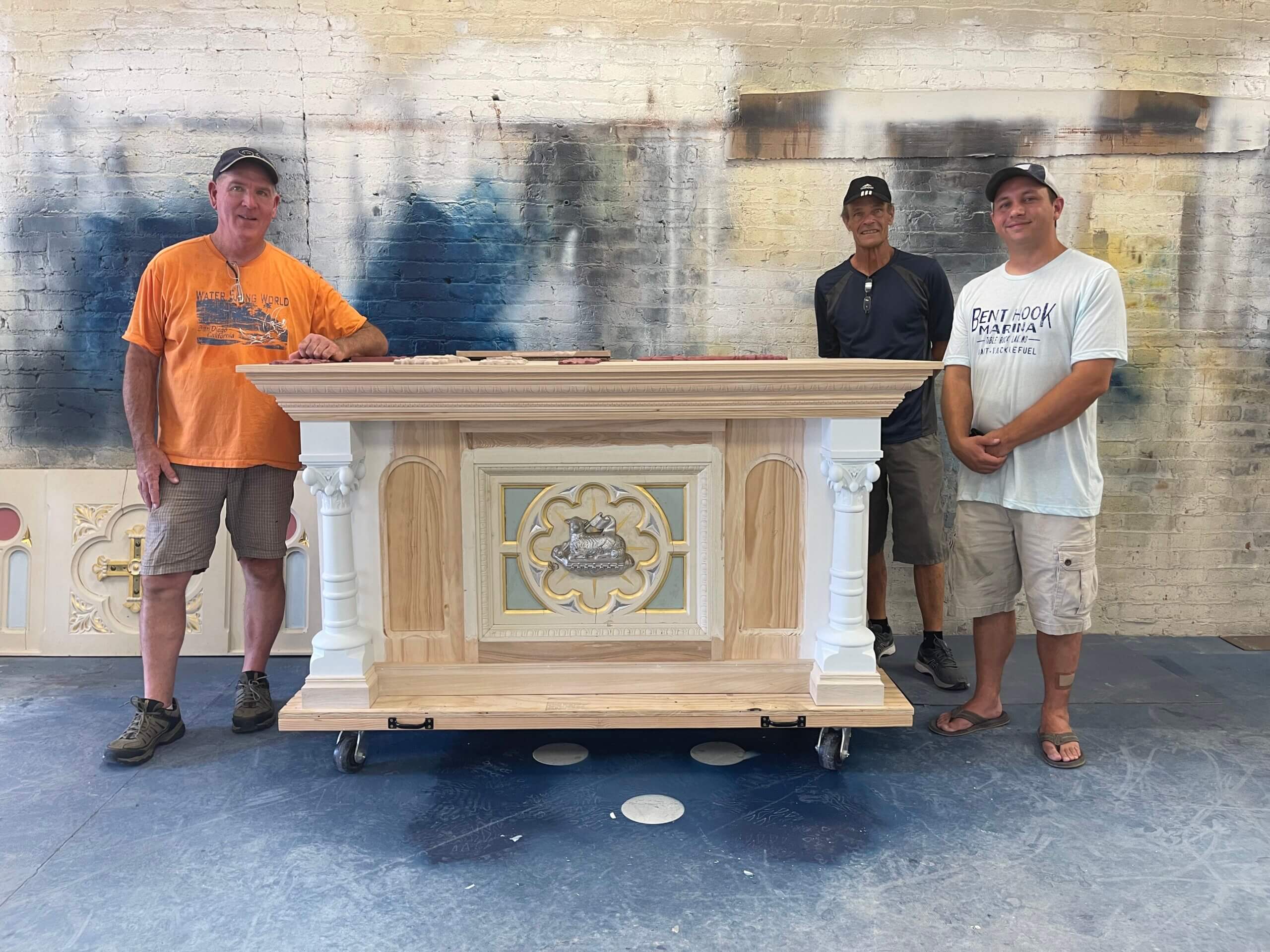 Jordan stated, “I truly feel honored to be a part of this project. It was enjoyable working with my Uncle Vince as he is a master craftsman and comes from a long line of carpenters. It was a nostalgic feeling measuring the altars that my great-grandfather worked on and trying to replicate the work that he and his company created. I am amazed at the level of detail they achieved with the tools being used over 100 years ago. I think our ancestors would be proud of our work!”