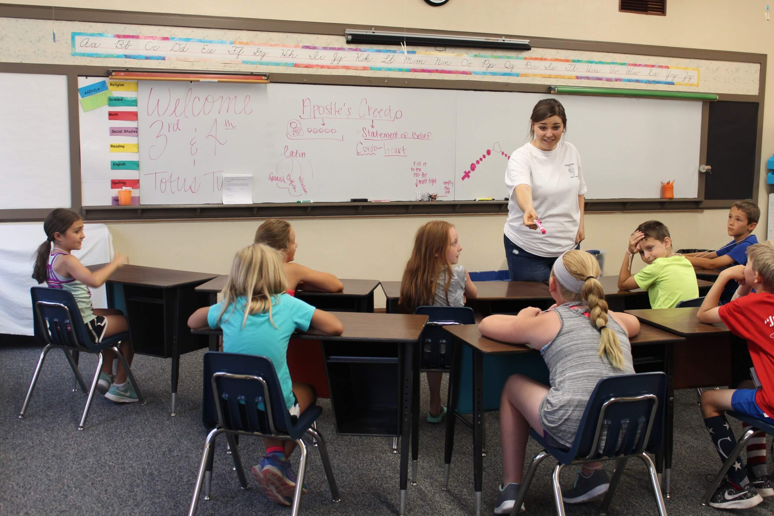 Totus Tuus calls upon college students and seminarians from across the United States to carry this mission to every young person they encounter. These young men and women are hired for their energy, enthusiasm, love of the Faith, commitment to spiritual growth, ability to work with a team and a desire to work with youth.