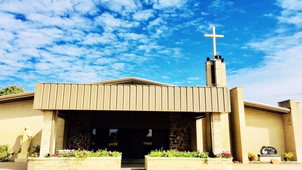 By 1949, the community had grown to 41 families and was meeting every Sunday in City Hall. Bishop Frank Thill appointed a pastor, and the community agreed it was time to build a church. The first Mass in the new church was said in February 1950.